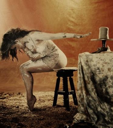 Which makes it terribly disconcerting, rather worrying for the nerves, when she unzips her granny dress, steps out of it and stands in a short plain slip. It’s almost as if she’s stripped naked. She is clearly a middle-aged woman with a formidable bosom and Rubensesque hips, but the limbs taper swiftly to delicate ankles and flower-like hands. She moulds a wet clay pot on stage briefly, then breaks it and starts slapping clay slip on herself. This is not a happy sight, and while I guess we are invited to see this slithery, dripping clay as a lost baby, born, perhaps aborted, perhaps simply wished dead, Yerbabuena's tableaux here are slushily sentimental, the exact opposite of what she achieves when she dances.