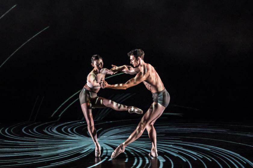 The title refers to the startling clear blue skies seen during lockdown when the absence of planes and airborne pollution made the entire population look up and out, more conscious of the natural world. Tuckett’s 12 dancers begin on a grid, each imprisoned in a square, but soon the walls and floor are projecting rapidly changing textures: clouds, wind-tossed treetops, flocks of birds. The dancers too become textural material, embodying the thrum of John Adams’ shimmering strings and at one point a whirling sonic vortex. In a serene central section (pictured above), they manipulate huge hinged white skirts to suggest lilypads and scallop shells, or even the solar system. The intricately changing picture is superbly controlled and utterly absorbing, the dancing a triumph of ensemble. At the end, I wanted to see it over again.