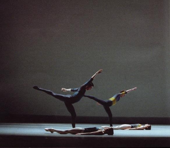 Wheeldon, 37, is a very different cause, very clearly a man who writes joined-up ballet of beautiful modern calligraphic script inspired closely by his music. His Tryst, made in 2002, ambitiously attempted to ride James MacMillan’s great bucking 1989 piece (composed for the Scottish Chamber Orchestra) and the integrity of the attempt carries it through the mountains. The costumes are nicer than the McGregor ones, dip-dyed dark bodysuits in blurry stripes of indigo, blue and red, against a foggy-grey sort of back drop that, in a very distant way, evokes Scottish highland air (Jean-Marc Puissant and Natasha Katz are responsible).