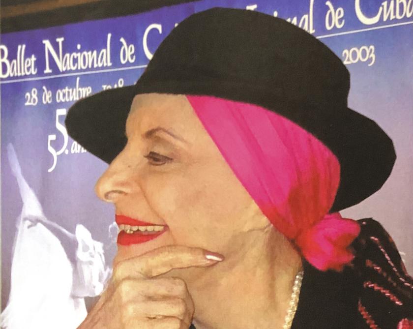 It is November in Havana, Cuba, in 2004. We are in her office in the Ballet Nacional de Cuba headquarters, bright and warm with the sunshine. Alicia Alonso sits, tiny, old, preserved as if by her own willpower in an exotic majesty that feels exciting to encounter. She is all strong colours, wearing a royal blue dress and matching turban, black glasses over her famous eyes, her skin stretched tight over a face that is unnaturally, thickly made-up. Her long curved nose and long red slash of mouth underneath make a forbidding, intense, glamorous impression, like an ancient Spanish duenna. She is reluctant to smile for the photographer, preferring to poke her nose upwards and stretch the lips thinly across the face.