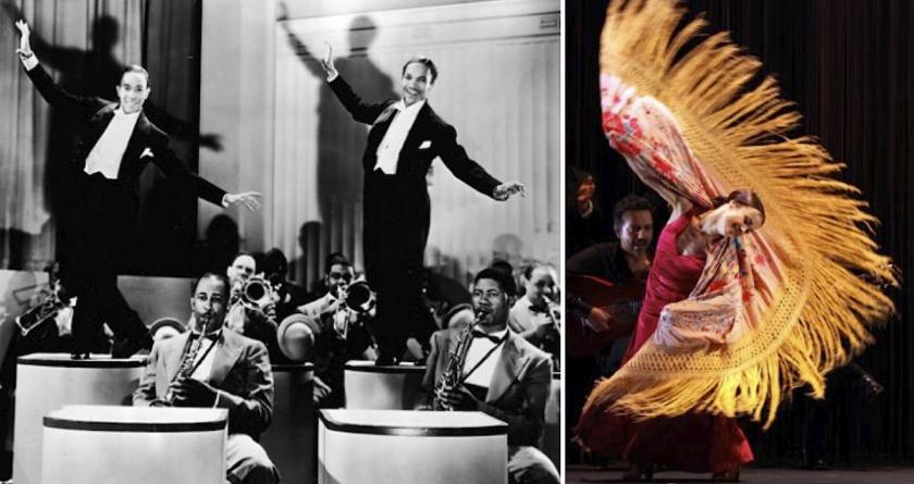 While rhythm from the step-dancing traditions tends to be regular, four-square, dictated by a band, in flamenco and kathak the rhythm is led by the dancer, who improvises much of his or her show with a highly sophisticated musical sense. Each of these dance traditions looks for its essence in its music - flamenco with its emotional songs, kathak with its bubbling tabla. The flamenco framework may be 12 beats to a bar, but a dancer will divide that up into threes, fours, fives, according to her mood. (The legendary Carmen Amaya pictured left, courtesy Pedro Soler)