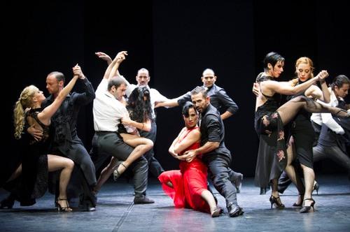 Esther Garabali’s movement should probably get her reclassified as more liquid than solid, while Melina Brufman (pictured left) steps as precisely and fastidiously as a cat in snow – but at the pace of sub-machine-gun fire. The best vignettes are those where something unusual happens – however wonderful Garabali’s movement, she is still cast in the tedious role of a woman who huffily fends off a man’s predatory advances, but – surprise! - turns out to like it really and then becomes needy and hysterical when he loses interest. Much more powerful are the trio of men who dance with the exhibitionist flair of teenage breakdancers but whose faces evoke a Sharks and Jets-like tension, even as their bodies slide through tango's loving embraces.