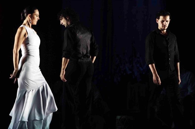 But Patrias works in the end because it is neither bombastic, nor straightforward. Paco Peña’s flamenco is not the blistering, fiery stuff of Cádiz, where the rapid fire percussion of the dancers’ feet might singe off a few layers of epidermis just by sound, and there’s no quiet space into which ambiguity can creep. Angel Muñoz (pictured above right) and Mayte Bajo, the two dancers here, are stunning and magnetic, but through their refinement, rather than their noise. The choreography Fernando Romero gives them is often gentle, highlighting fluidity rather than tension – indeed Bajo’s dancing often verges on the balletic - and their costumes are simple, no frills or bright colours in evidence.