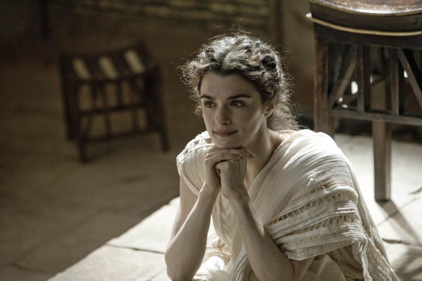 Living in Alexandria's Great Library - which doubled as a public forum, or "agora" - Hypatia, played by Rachel Weisz, is a sort of intellectual Helen of Troy who captivated a generation of aristocratic students, including the city's future prefect, Orestes (Oscar Isaac), as well as her slave Davus (Max Minghella). In one of the few facts still known about the historic Hypatia, she dampens Orestes's ardour by handing him a cloth stained with her period at a lecture - no surprise that she was a feminist icon of the 1970s. When an attempt to massacre Christians badly backfires and the Library is sacked, she ignores the feuding faiths in order to pursue the truth of the Earth's relationship to the Sun.
