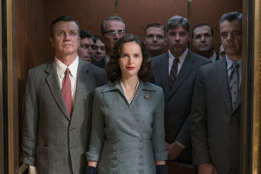 Leder’s opening shot evocatively reflects what that mountain looks like: a sea of men in suits. It’s only when the camera comes down to street level that we see, buried within this mass of monochrome uniformity, the tiny form of a woman. It’s 1957 and Ginsburg (Felicity Jones) is one of only nine women admitted into Harvard Law School, a token concession they are reminded of at every turn, not least by the monstrous Dean Griswald (Sam Waterston, who has specialised in shifty lawyers, from Law & Order to Miss Sloane). At his annual dinner, the dean cruelly challenges the nine to stand up and explain “why you’re occupying a place that could have gone to a man." Only Ginsburg gives the appropriately ironic response.