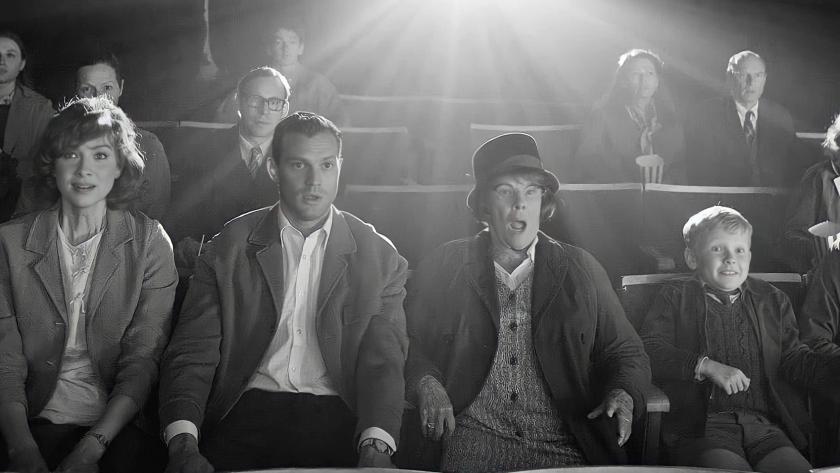 “We use a kind of liquidy, silky, velvety black-and-white,” Branagh has explained. “I would call it a Hollywood black-and-white, a way in which Buddy, our 9-year-old, saw the world rather glamorously.” It’s also a way for Branagh to inject, via Buddy’s fondness for watching classics like High Noon or Shane, his own fascination with Hollywood history and vintage Westerns. The film’s progress is tracked by nostalgically comforting cinematic images as Buddy and family go to the pictures to see period pieces – in colour – like Chitty Chitty Bang Bang or a risqué Raquel Welch in One Million Years BC. Aptly, the soundtrack is peppered with songs by Van Morrison, the Belfast Cowboy himself, including a newly-recorded version of 1970’s “Down to Joy” alongside “Warm Love”, “Bright Side of the Road” and other delights.