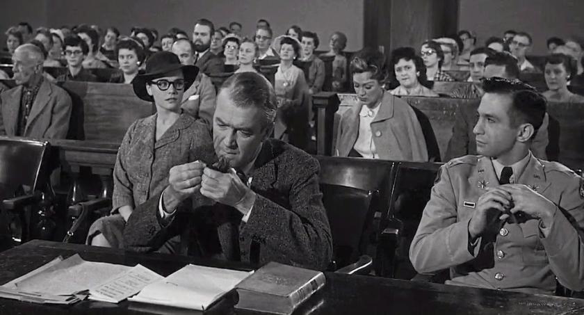 He even has Laura’s cute dog brought into the courtroom, ostensibly because it has a bearing on her dealings with Quill, primarily to charm the jury. Slowly, Biegler’s adroit play-acting – enamelled in Stewart’s iconographic folksiness – changes the atmosphere in the room. His introduction of a witness (Kathryn Grant) who's not whom Dancer thinks she is gains Biegler another advantage. Winning “justice”, then, is attributable to a series of feints and dodges, to guile and grandstanding. The touching friendship between Biegler and McCarthy and Preminger’s cool rather than sardonic appraisal of the characters preserve this outstanding film from Billy Wilder-like cynicism.