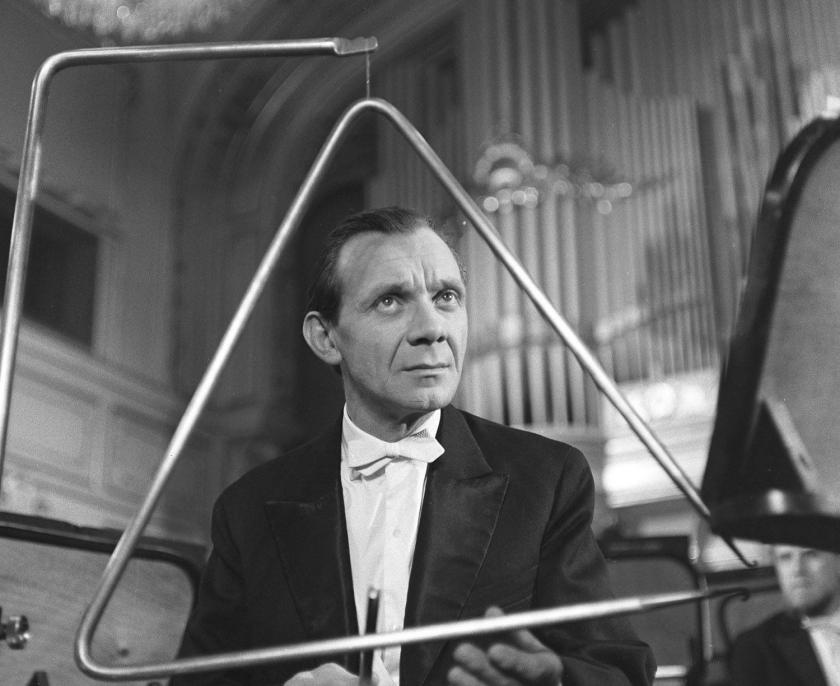 One of The Barnabáš Kos Case’s incidental pleasures lies in its relatively accurate depiction of orchestral life. Much of the action in Peter Solan’s 1964 Slovak black comedy (originally title: Prípad Barnabáš Kos) takes place in a rehearsal studio, one filled with real, non-miming musicians. Actor Milivoj Uzelac, playing one of the conductors, was also a composer and actually looks convincing on the podium.