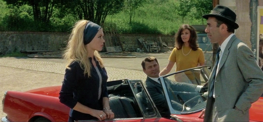 Godard’s meditations on these themes are essayistic, their cold rationalism evoked through affectless interactions, the dissonant mix of classical and modernistic mise-en-scène (as identified by film scholar Adrian Martin), Brechtian sloganeering (per André Bazin, “Cinema substitutes our gaze for a world more in harmony with our desires”), and dialogue frequently repeated. Prokosch’s assistant producer and mistress Francesca Vanini (Giorgia Moll) is charged with translating French, Italian, German and English for the crew of Prokosch’s international co-pro, though Godard supposedly used the language mix as a ruse to control his scathing satire.