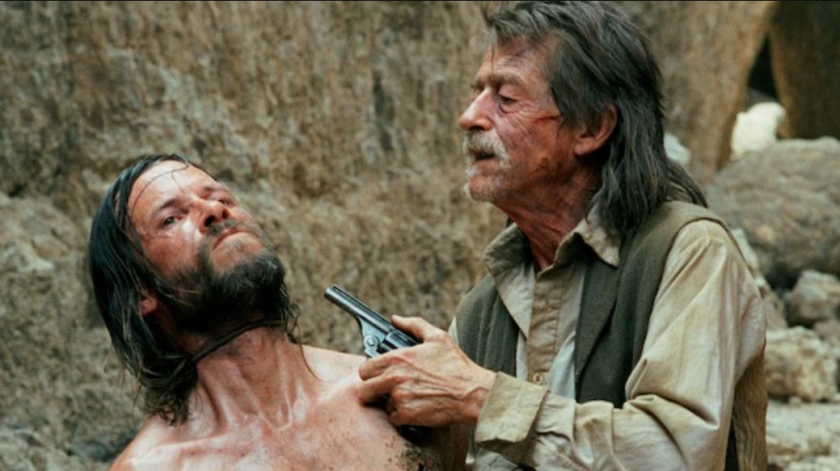 Gloomily manifesting this imperative, with due apologies to Martha, Stanley is one of Winstone's most nuanced characters. Facing a massive dilemma, Charlie, his adversary, remains impassive, but his subjectivity is evinced through a stream of consciousness relayed as celestially phrased existential whisperings that render Pearce's leathery rider an Aussie avenger in the Pale Rider mould. John Hurt is memorable as an English bounty hunter – a scurrilous, fruity-voiced cutthroat one could imagine helping Harry Flashman to persecute Tom Brown at Rugby