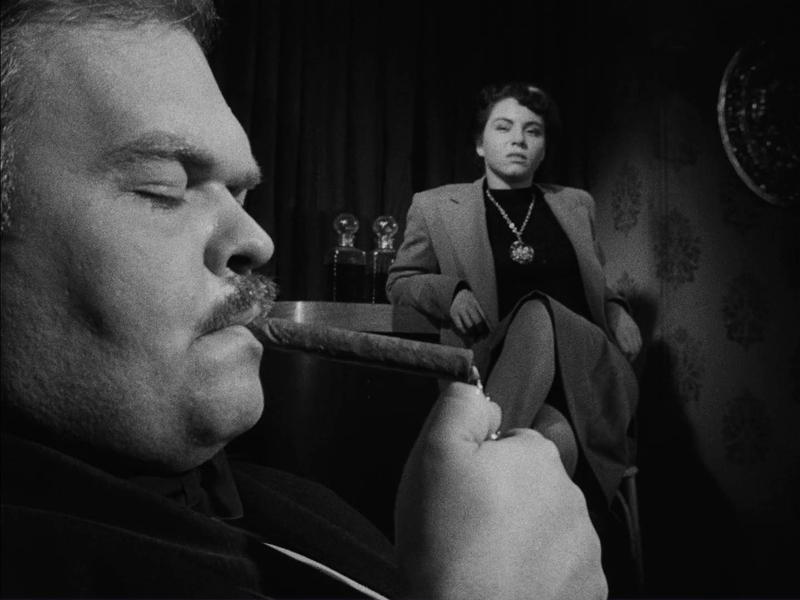 The 61-minute movie – which features sound effects but no dialogue – unfolds in real time. In her room in a seedy Hollywood hotel, a psychotic woman (Adrienne Barrett) – called "The Gamin" in the credits – clenches her sheets as she lies in bed dreaming. Waking (perhaps) and finding a flick knife in a drawer, she sneaks downstairs, ignoring a toddler who offers her a toy and avoiding a Chandleresque huddle in which a woman is showing her bruises to a cop. Gusts of wind blow a news sheet headlined “Mysterious Stabbing” after The Gamin as she ventures along Skid Row, before an obese bigwig (Bruno VeSota) takes her on an impromptu tour of sleazy nitespots with catastrophic results.