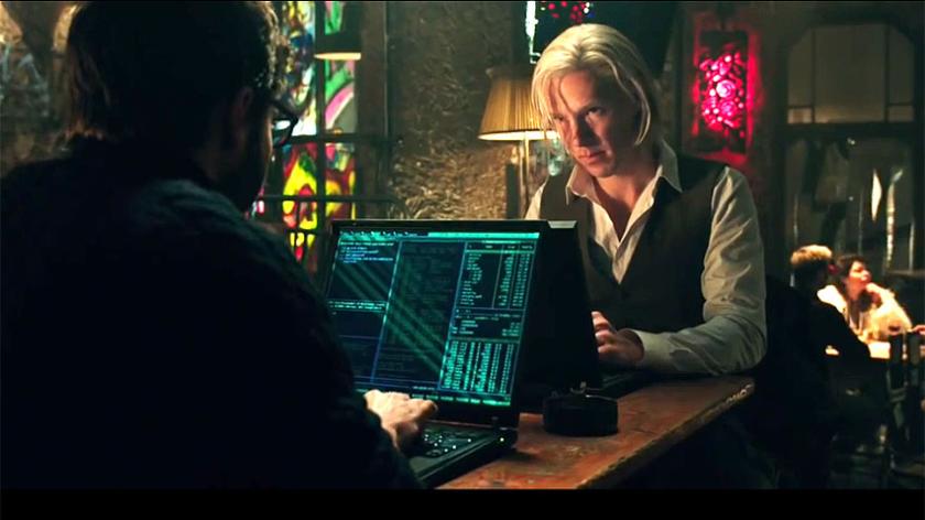 It’s somehow symptomatic of their superpowers that those laptops seem never to be connected to any wires or plugs. The film jumps around the functional cities of Europe from Reykjavik to Berlin (they don’t bother much with the southern half of the continent - perhaps the wi-fi is unreliable) and everywhere they whip computers out of rucksacks and carry on slinging rocks at Goliath. Most of these encounters take place in grungy flats or cafes or nightclubs. Bill Condon (last seen directing the Twilight saga) has tackled the problem of showing boys with (to look at) quite boring toys by locating some scenes in a virtual office open to the skies, with monitors on desks disappearing to the horizon. It doesn’t quite work.