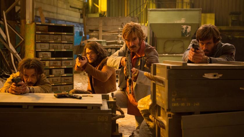 The set-up is a gun deal gone wrong in 1978’s USA, a period high on lurid disco fashion and low on plot-capsizing mobile phones. Chris (Murphy) and Frank (Wheatley regular Michael Smiley) are probable IRA men arriving for an arms deal brokered by Justine (Larson, in a powder-blue suit setting her coolly apart from the clothes crimes elsewhere). The sellers are led by smoothly superior Ivy Leaguer Ord (Armie Hammer, pictured below left with Larson, Murphy, Sam Riley and Smiley), icily brooding Marlon (Babou Ceesay) and Rhodesian social hand-grenade Vernon (South Africa’s District 9 auteur-star Sharlto Copley).