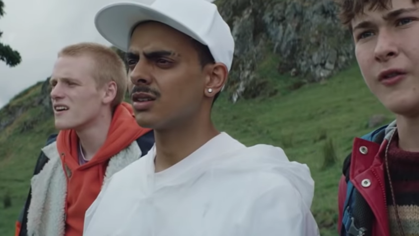 The scallies are joined by way of corrective measure by an indrawn goody two-shoes called Ian (Samuel Bottomley), whose aspirations toward law school set him apart from fellow adventurers like Dean (Rian Gordon), whose life as a factory worker seems preordained, or the livewire William (the charismatic Viraj Juneja), a hip-hop devotee who goes by the moniker DJ Beatroot and sounds as assured of his own eventual success as the others are tentative. Completing the group is Duncan (Lewis Gribben), who has barely begun hiking before getting electrocuted. Nor does their map turn out to be much use once it is ripped and pressed into service so that Dean can roll a joint. Drugs are essential to this quest: why else, after all, would their given terrain be called the Highlands (hah!).