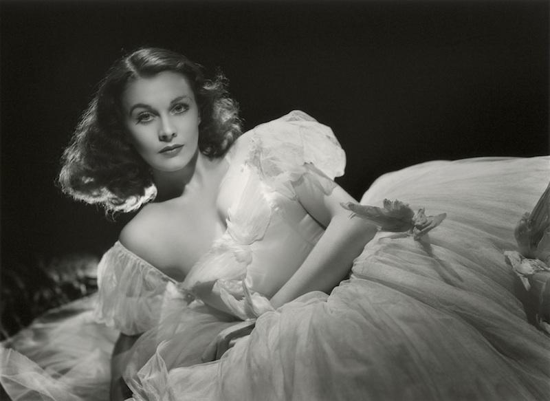 There were exceptions, of course. A still for Gone with the Wind (1939) shows Vivien Leigh with dirty clothes and dishevelled hair, her brow furrowed with the anxiety of her arduous return to Tara, the O’Haras' plantation, during the Civil War. The following year, though, in a portrait for the film Waterloo Bridge, Laszlo Willinger restored her to virginal beauty. With shining, back-lit hair and a faultless complexion, she demurely reclines in a frothy white gown decorated with feathers; it's as though the tough cookie from Gone with the Wind had been replaced by an exquisitely fragile yet supremely seductive bird.