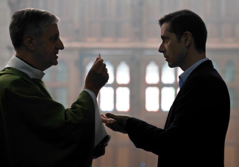 The first we encounter is Alexandre (Melvil Poupaud, pictured left), a devout Catholic who, as his elder sons prepare for confirmation, becomes aware that the priest who had abused him in childhood, Father Preynat, is still, some three decades later, involved with children in the course of his pastoral duties. His immediate recourse is to the Archbishop of Lyon, Cardinal Barbarin (François Marthouret), to establish just what the Church had known and when; the conflict throughout the film is as much with the organisation, the structure that considers itself above the law as with the individual concerned. The diocese’s response, effected by their psychologist, is to bring Preynat (he’s played by Eric Rohmer veteran Bernard Verley), together with his accuser in a highly poised scene; we sense how the balance of power remains firmly skewed in favour of the establishment in details such as Alexandre addressing the priest as mon père. Not only does Preynat not apologise (which the Church hierarchy appears to have expected might resolve the issue), but he reveals how he had been open with his superiors when the first such accusations had surfaced in the early 1980s (he even describes his actions as a “blot on my life”, painfully oblivious to their actual consequences).