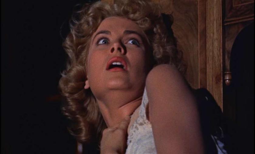 Kelly plays Margot, the wealthy young wife of suave tennis pro Tony Wendice (Ray Milland) who is having an affair with an American writer of crime fiction, Mark Halliday (Robert Cummings). (What was it for Hitchcock with cuckolded tennis pros and murder? Strangers on a Train also features a tennis ace who wants to bump off an unfaithful wife.) Wendice blackmails a moustachioed ne’er-do-well from varsity days (Anthony Dawson) to murder his bride while he and Cummings are out dining, only to reckon without the apparently fey Margot’s ability to look after herself. The defining image of the play finds Kelly reaching for scissors as she is being strangled and plunging them into her assailant’s back. With the help of Halliday’s honed literary imagination and a wily chief inspector (John Williams), Wendice’s dastardliness is slowly revealed, but not before Margot is found guilty of murder and sentenced to swing.