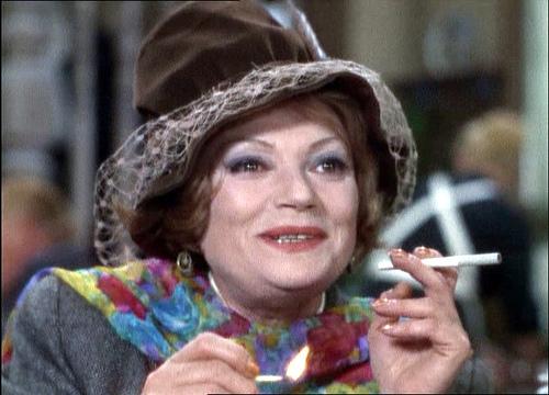 Hitchcock must have calculated that Kedrova's exotic bird of prey would radiate some flamboyant humanity in a grey Cold War suspenser in which his stars are especially reticent. He introduces the Countess on the street as Armstrong and Sherman, having narrowly escaped gunfire, seek the Friedrichstrasse post office. The viewer is immediately drawn to her bright eyes, her multicolored scarf and absurd hat, and her readiness to blackmail. How does she know Armstrong is Armstrong? It doesn’t matter.