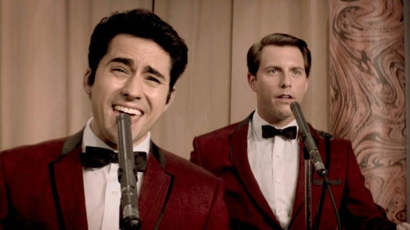 And the songs - ranging from the doo-wop dazzle of "Sherry" through to the finger-clickin' strut of "Walk Like a Man", "Let's Hang On", and (my personal favourite) "Rag Doll"? They are there like teases from some glorious onstage life even as we trawl the corridors backstage, their collective power reserved for a lovely final credit sequence in which the show's choreographer, Sergio Trujillo, puts the cast through their paces. One only wishes that Young's voice didn't sound as frayed at times as it does here, a consequence perhaps of his unyielding commitment to portraying Frankie on stage. (The 38-year-old performer did a brief run on the West End in the role earlier this year.) The real Frankie's preternaturally high register - a function of helium or what? - can be punishing on the voice, and at least Young connects up to the part in other important ways; he knows the role from the inside out, not just as a series of vocal tricks and affectations.