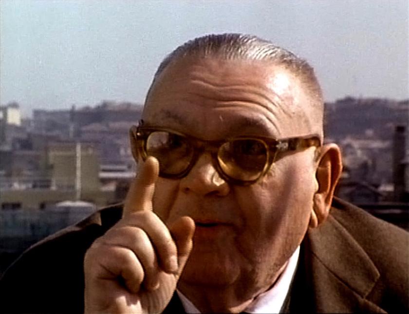 Photographs from that period show that Murmelstein was always a bulky man. Our first sight of him is the back of his head, a thin slick of greased hair flanked by the bulging folds of his neck. He talks as he looks out over the terracotta rooftops of the Eternal City (“Rome doesn’t need me to tell her she is beautiful,” he says, in one of his many epigrammatic utterances), then turns to reveal a pugnacious profile in heavy specs. “Judaism is missing," he is in the middle of saying. "It is lacking from the world that was destroyed.” This is essentially a film of an interview, but it has an intensely dramatic eye.