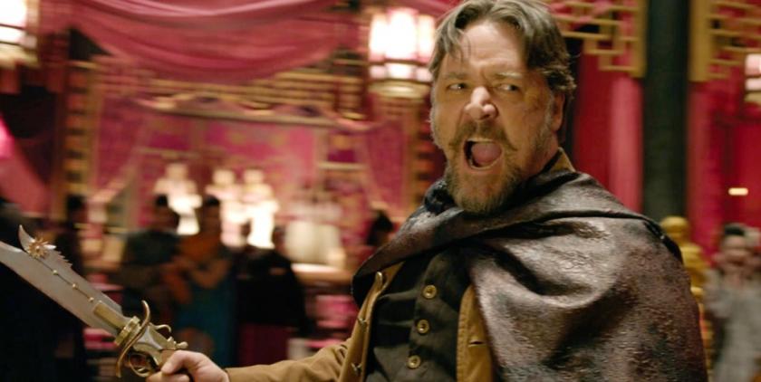 The messy plot sees good and bad guys converge on a small Chinese village when it plays host to a shipment of government gold. RZA (pictured right with the fists) plays the “Blacksmith”, a peaceful man and former slave, who has the dubious honour of forging the weapons for Jungle Village’s competing animal clans. Lucy Liu appears as Madam Blossom who oversees the lavish brothel which becomes the centre of the action in more ways than one. Rick Yune is Zen Yi, out to avenge his father who has been killed by his lieutenants keen to lay their hands on the booty. The gigantic WWE wrestler Dave Bautista features as the fantastical (and slightly random) Brass Body, while Crowe (a friend of RZA, if you were wondering how this possibly came about) pops up as portly Englishman Jack Knife.