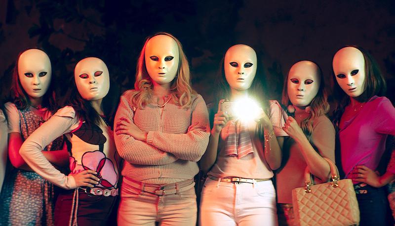 The pastor’s message is ultra-conservative, puritan and unashamedly patriarchal. Michele (Lara Tremouroux, pictured above, centre), her best friend Mariana (Mari Oliveira) and their troupe buy into it completely, their only aspirations being perfect lip gloss and marriage to one of the Watchmen of Sion – the football jocks to the Treasures’ cheerleaders, were this a high school comedy, but here more akin to paramilitaries, who don’t think twice about beating their girlfriends. Self-styled influencer Michele’s videos include a remarkable pairing: “how to take a perfect Christian selfie” and “the secret to covering up bruises and wounds”.