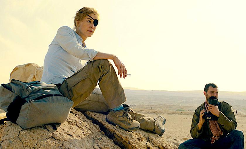 Coming at this assignment with his own documentary background, Heineman is far better off letting Pike's unforced charisma and sense of purpose carry the day. That summary achievement holds true whether Colvin is seen in conversation with an admiring Gaddafi (here played by Raad Rawi), who lets it be known that he prefers her to Condi Rice, or happens to cough, at which point a tooth falls out. (There's a droll moment, too, where she admits to always wearing a nice bra because, well, you never know.) The film additionally does nicely by the relationship between Colvin and her photographer, Paul Conroy (a likeable Jamie Dornan), of whom the reporter feels comfortable enough both to crack jokes and to take into the line of fire. Conroy, thank heavens, is around still to tell his story whereas the full extent of Colvin's, inevitably, goes beyond the scope of any single film, whether this one in (albeit only relative) fiction, or Chris Martin's acclaimed documentary Under the Wire which preceded it.