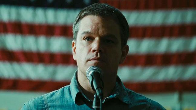 Noticeably, the casting is flawless. Damon plays Steve Butler, the son of a dairy man who feels that fracking can be the answer for the cash-strapped farmer. Visiting various households, he and his partner, Sue Thomason (Frances McDormand), make offers on behalf of their corporate employer to buy the land under certain farms. As a friendly new face, Steve reassures the locals that he is, in fact, just like them and that the money fracking promises can, say, send a child to a good school. Frank Yates (Hal Holbrook) is one farmer who is less than convinced. Cue the appearance of smart-mouthed, smooth-talking environmentalist Dustin (John Krasinski, pictured below with Damon) who not only pees in the pool of Steve and Sue’s buying plans but also nabs the attractive female teacher that Steve had marked out as his own. The plot develops into a nail-biter: which side the community will follow and, separately, who is telling the truth?