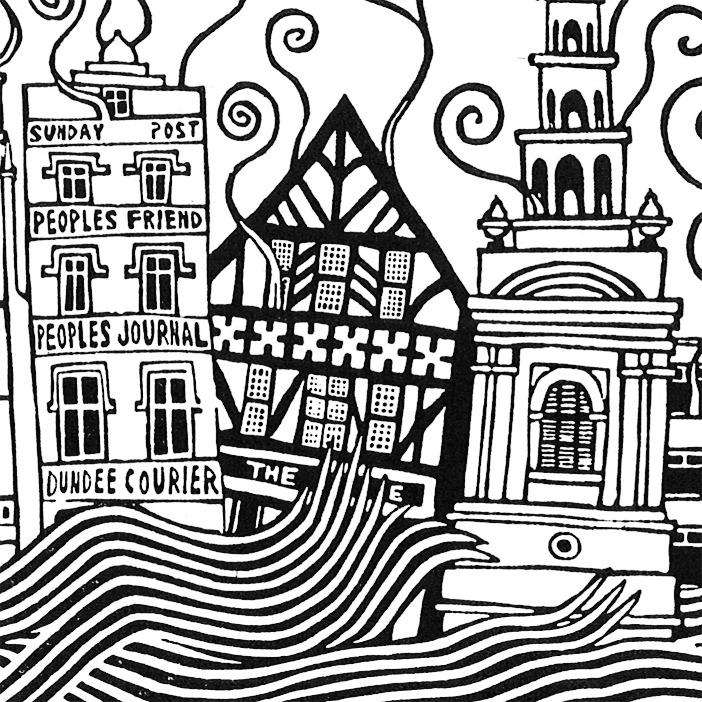 Alongside Donwood’s earlier Slowly Downward and other items, Household Worms itself was for sale both in regular format (£10 cash) and, as befits this artist’s slightly alternative way of doing business, one page at a time, blown up and signed for the princely sum of £3. Oscar Wilde, when told an incriminating letter of his might fetch a fiver in certain circles, rejoined that that seemed like a very good rate indeed; but I’m sure there are other ways of ascribing value. For myself, I chose the page nearest the top, with the most swear words on. Page 77 it was, I think.