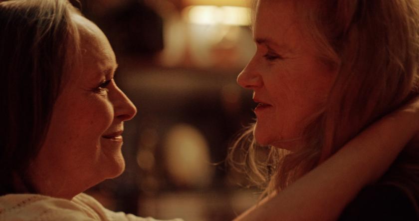 But Mado has two conventional adult children and a grandson, and has never told them about her relationship with Nina, who they know with French formality as the pleasant Madame Dorn across the corridor, or about selling the flat. She can’t quite muster up the courage, partly because her son, Frédéric (Jérôme Varanfrain) guilt-trips her constantly about what he believes was her infidelity in her marriage, though there’s no proof provided. He's also concerned about his inheritance. Her divorced hairdresser daughter, Anne (Léa Drucker; Custody, The Blue Room, The Bureau; pictured below with Mado), who blow-dries her mother’s hair every Thursday, is much more loving, as is her grandson, Théo (an impressive, melting-eyed Augustin Reyes). But yes, perhaps they do have a problem with old dykes.