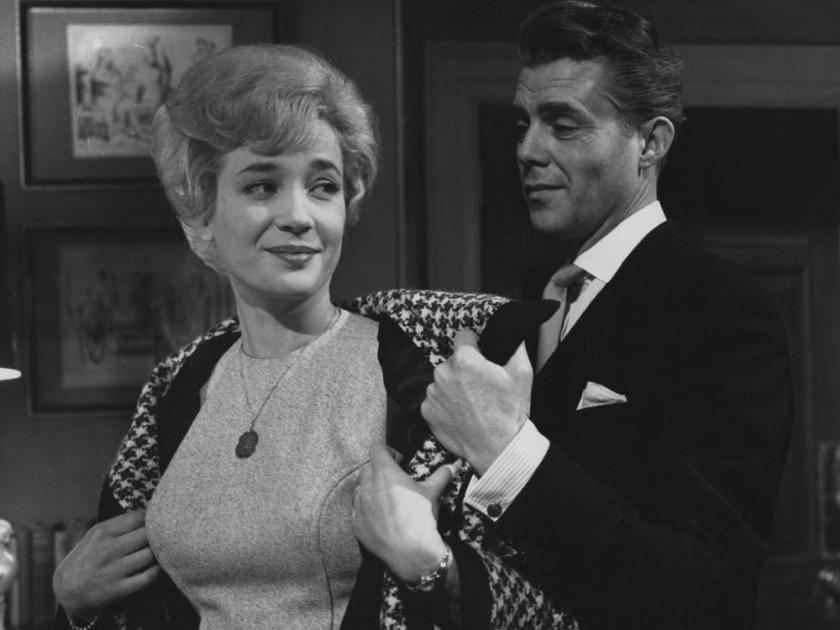 Dirk Bogarde is needle-sharp as Melville Farr, a sophisticated London barrister with a successful practice who is about to become a QC - and whose tamping down of his homosexuality has filled him with angst. He lives peaceably, however, with his wife Laura (Sylvia Syms), having confessed to her before they married that in his past he had chastely loved a fellow Cambridge undergraduate who subsequently committed suicide. Mel and Laura kiss passionately at one point, but her voluntarily working as a teacher of infants, including a special-needs pupil she individually monitors, suggests she regrets her and Mel’s childlessness.