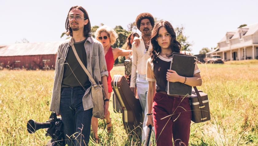 From the moment blonde Bobby-Lynne (Brittany Snow) steps out of the Bayou Burlesque club beneath a mural of an alligator snapping at a bikini bottom, and the camera pans to the industrial estates and belching refineries behind this particular American dream, West wittily depicts sex as small-town escape and work. “Hollywood here we come!” cries this veteran porn star, as she joins mellow co-star Jackson Hole (Scott Mescudi, aka star rapper Kid Cudi), coke-snorting porn wannabe Maxine Minx (Mia Goth), showman producer Wayne (Martin Henderson), director RJ (Owen Campbell) and his girlfriend/assistant Lorraine (Jenny Ortega) on a road-trip. They mean to shoot The Farmer’s Daughters under the suspicious nose of shotgun-wielding, ancient farmer Howie and his equally decrepit, eerie wife Pearl.