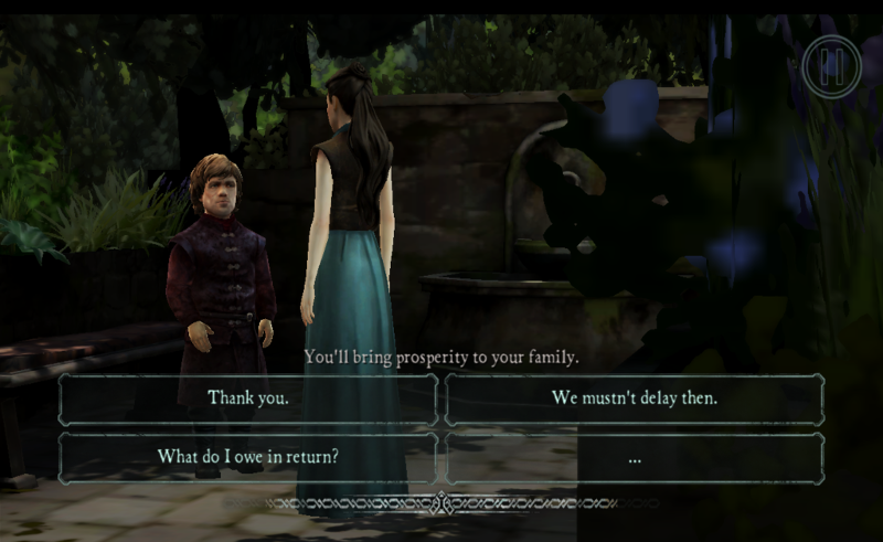 Episode 2: The Lost Lords, opens well with the introduction of Asher Forrester, the exiled Forrester sibling mentioned in Episode 1. Asher is a hard-drinking, smirking mercenary caught up in the various battles surrounding noted dracophile Daenerys Targaryen, in the sunny bit across the sea from drizzly Westeros. It's not long before swords are thrust bloodily through necks and Asher is hoofing it off in search of a mercenary army to take home and liberate his ancestral pile.