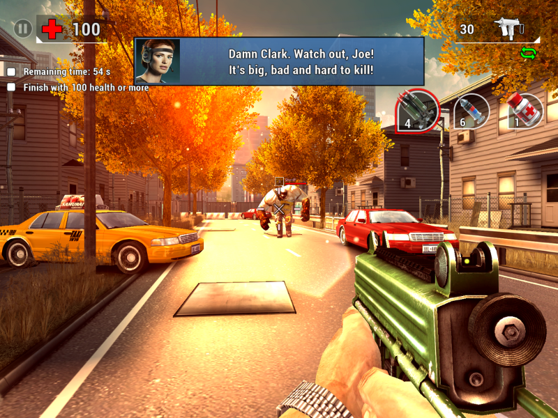 You can simply use your left thumb to move forward, back and side to side and look around with your right thumb. If the crosshairs of your weapon fall on a target that you can shoot, then shoot it you will. As shooting is the only thing you want to do with a target, this makes perfect sense and helps to make Unkilled much easier to play than a lot of its rivals.
