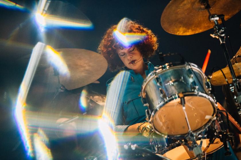 The knotty problem of performing in the round is who and where to face. The set design solved it by parking two drum kits and a white upright piano on a central raised revolve, while the various musicians faced outwards, making eye contact with the audience rather than each other. That speaks of confident musicianship. It was a rare moment towards the end when the burning heat of “Neighbourhood #3 (Power Out)”, which closed the main set, found the band centripetally leaning into one another. Between songs, like hot-desking lab rats in a bustling sci-fi scenario, they’d swap instruments and positions so that the stage was always alive with energy, even when William Butler wasn’t hectically thwacking a handheld drum as if to energise a revival meeting.