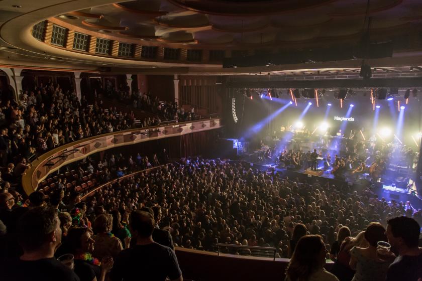 From the grins, ecstatic gurns and cheeky winks of acknowledgement passed about, many a babysitter in Brighton tonight will welcome home parents with pupils the size of overcoat buttons. The tips will be generous and they may even be asked to stay for a Lucozade and a jump around the living room to dusty old 808 State 12”s. The desire to party is so rich here it’s almost palpable in the air. When the Manchester Camerata Orchestra and its soulful singers hit the stage, alongside Haçienda DJs Graeme Parke and Mike Pickering (him off M People), a keyboard player hits a familiar motif, then the screaming really starts.