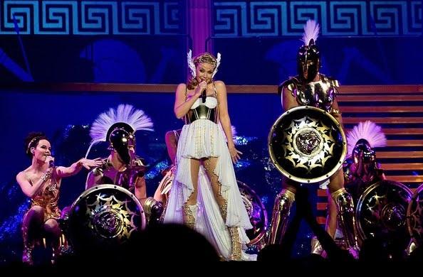 I’m not exactly Kylie’s biggest fan but I’ve been watching her shows for a couple of decades and she and her creative team have consistently pushed the boundaries of the arena pop show. To begin with she was setting some kind of record for the youngest audience members, as parents and tiny tots bopped to her bibbly Stock, Aitken and Waterman hits; then she started to be taken a bit more seriously, lauded for her song-and-dance spectacles with lavish costumes and high production values, joining a market previously dominated by Madonnna and now being given new momentum by Lady Gaga.