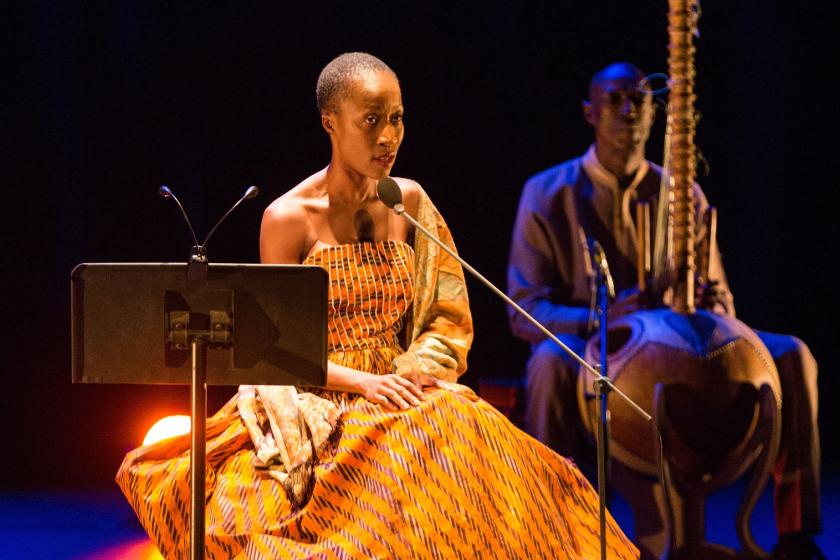 Rokia Traoré’s passage through this year’s Brighton Festival has been central, binding it to her Malian identity in a series of gigs. This hands-on Guest Director’s pulsing Afro-rock Opening Night was followed by the first Dream Mandé show’s recasting of traditional sounds. A Malian Dance Night added FGM protest, Seventies s.f.-soundtracked myth and cheeky wit from young choreographers. But this show is surely Traoré’s cornerstone, supporting all the rest, as she takes on the role of griot to recast Mali as democracy’s secret rock.
