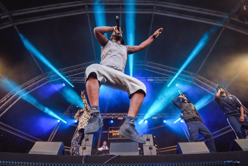 The skill of Sónar's programming is that none of this seems tokenistic. There was almost always the sense that what had been programmed was there because it was the best of its kind, and this provided not only some brilliant thrills but some extraordinary juxtapositions. The best of these dizzying clashes came on Saturday afternoon, when I came out from watching Raster-Noton boss Carsten Nicolai aka Alva Noto (pictured top) deliver an hour of brutal, razor-sharp electro beats, rather like a weaponised Kraftwerk, with hyper-detailed strobing visual accompaniment in a pitch-dark auditorium, to see South African “Shangaan Electro” wizard Nozinja (pictured above right) and his impossibly energetic singer and dancer deliver a performance in literal and figurative technicolour, full of cascades of fierce joy and hilarity.