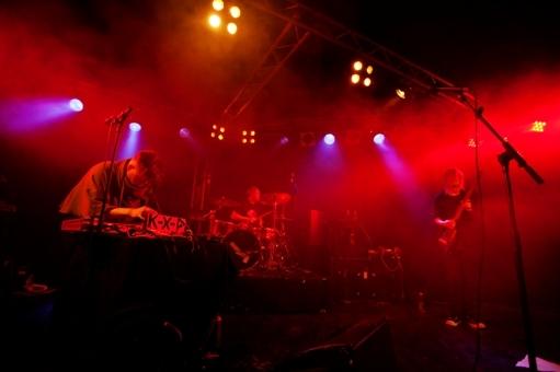 Even more confident were LCMDF (formerly Le Corps Mince De Françoise, pictured above), two electro-assisted shouty girls who've just signed with UK label Heavenly. Their bounciness and pep carried it along nicely. More intense were K-X-P, a three-piece (bass, drums and synth) whose relentless pulse borrows from Krautrock, the Glitters Band's drums and Acid House's early bloopiness. With Timo Kaukolampi on shouting and synth – he's the producer and co-writer for Swedish dance popster Annie – K-X-P are odd, compelling and hit like a drill. No talking to and looking at the audience, this is inward-looking and hypnotic. Aggressive too.