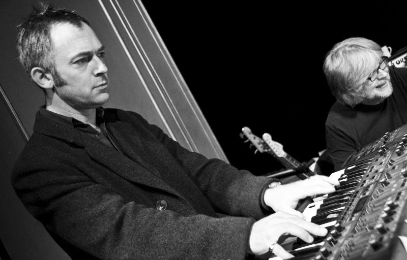 “Rainbow in Curved Air”, the evening’s opening piece, was played by an ensemble that included Adrian Utley (pictured below left), Will Gregory, Graham Fitkin, Ruth Wall and others. Hazlewood describes it as “the aural equivalent of climbing inside a giant lava lamp”, and as the organ loops swirled away, coming and going, Riley’s salvo against the conventions of goal-orientated narrative music took its hypnotic hold. The Steve Reich that followed, “Four Organs”, went one step further in the musical mantra stakes, repeating and stretching a chord many times over 15 minutes.