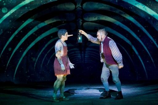 "Make me, make me,” calls a lonely log as the curtain lifts. Pinocchio’s subsequent eruption into life in Geppetto’s wood-lined workshop is accompanied by strobe flashes reminiscent of a 1930s horror film. Dove’s scoring throughout has a Technicolor vibrancy which never descends into cheap cliché and he’s adept at suggesting much with little – the wistful harp roulades which accompany Pinocchio’s dreams of becoming a real boy, or the snatches of accordion which give some of the crowd scenes a pungent, folky tang. In 20 scenes spread across two acts, the action has to flow swiftly, making the few moments of calm reflection the more touching; the reconciliation between Geppetto and Pinocchio in the belly of a fish is a lovely moment.