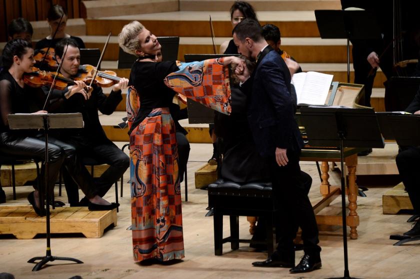 Three of the eight cast members are late substitutes for those originally advertised (no Lemieux, Orlinski or Lewek), but there’s nothing second-string about the final line-up. DiDonato dominates, radiating star-power, but there’s plenty of counter-weight in Franco Fagioli’s grotesque Nero, Xavier Sabata’s sweetly sincere Ottone, Luca Pisaroni’s Claudio and Elsa Benoit’s minx of a Poppea (pictured below with Fagioli).