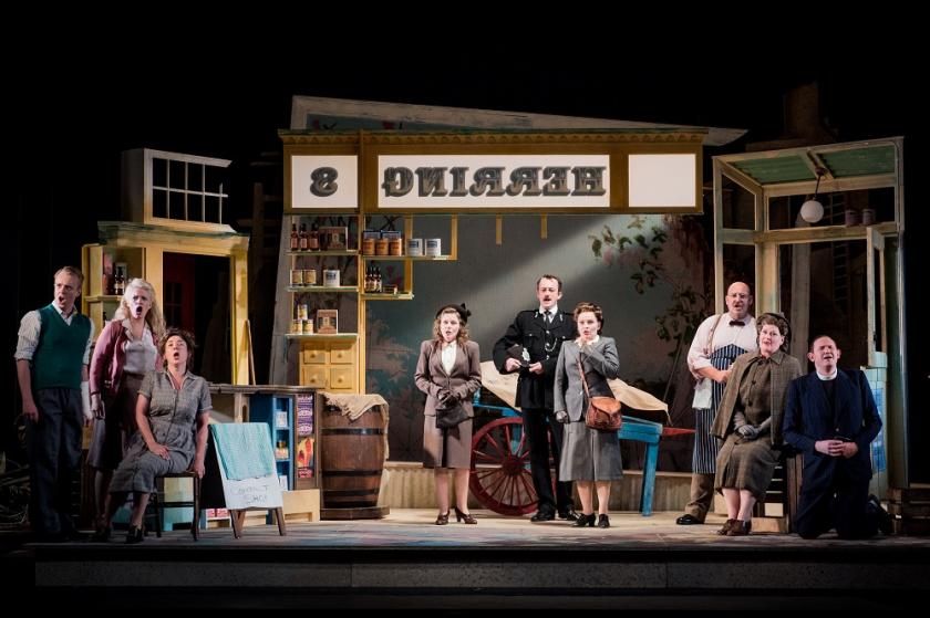 Coming the night after Macbeth, Britten’s Albert Herring felt, if not like undiluted sunshine, then definitely a refreshing spring shower. The only hint of thunder (since we know that nothing really bad is going to happen to Albert) comes in the downpour which, at the beginning of Act Two in Francis Matthews’s production, threatens to rain off the Loxford May Day celebrations. But that actually fits quite neatly with the hints of John Piper in Adrian Linford’s bright, just-naturalistic-enough designs. It’s hard to imagine any production of Albert Herring that strays too far from its original time and setting, but Matthews and Linford place it somewhere around the year of its premiere, 1947, with enough trestle tables and R White’s Lemonade adverts to evoke that Make-do-and-Mend era, plus a civic feast straight out of Enid Blyton (when was the last time you saw, let alone ate, a pink blancmange)?