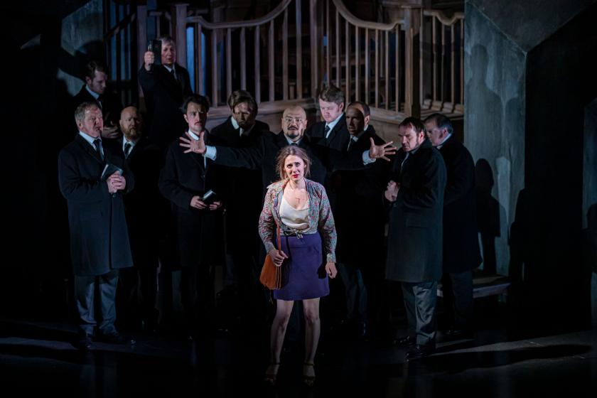 The chamber orchestra – excellent Scottish Opera players under Stuart Stratford, managing to glow at close King’s Theatre quarters – has plenty of variegated colours to negotiate, most strikingly the high violin lines for doomed heroine Bess’s ecstatic-troubled conversations with God and the ghosts of some potentially memorable woodwind solos in the second act. But Mazzoli relies too much on scales, major and minor triads – sometimes ground together – and “eerie” glissandi. The interior quality of von Trier’s mysterious take on a religious Passion doesn’t take hold often enough.