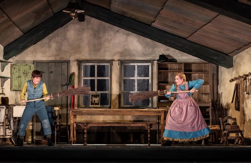 Everyone works hard on detail, but neither charm nor terror really emerge in the storytelling on stage. Winsomeness is there in the vivid conducting of Sebastian Weigle, a Frankfurt-based master of the top-league German romantic scores among which Humperdinck's idiosyncratic blend of influences - the Wagner of Meistersinger and Siegfried, possibly early Mahler, though who inspired whom in that case is hard to tell - happily sits; but the multi-hued narrative, witch and all, of this horn-rich Overture is not best illustrated by an Alpine-valley dropcloth giving way to one tableau of a Swiss Family Plentiful followed by another of cupboard-bare hardship. The Witch's Ride interlude has nothing visually to feed off. And then when we come to the house in the woods, Humperdinck's surface-lush parallel to Clara's arrival in The Nutcracker's Kingdom of Sweets is wrong-footed by a Bates Motel which would have sensitive children like these ones legging it on sight.