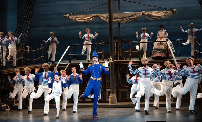But it’s worth it for the delights which do work. In Iolanthe, the Lord Chancellor’s man got all the laughs in wild physical theatre; his equivalent here is tap-dancing nine-year-old “Midshipmite” Rufus Bateman (13-year-old Johnny Jackson will go through the routines in four performances). His pint-sized insolence to ever-brilliant John Savournin’s tall, very Victorian-gent Captain Corcoran is funny from the start; his lockdown video viral sensation may have prompted the Act 2 hornpipe before we get down to more plot-unfurling, and it’s the expected showstopper; Lizzie Gee, Rufus' mum, who’s also worked on Sasha Regan’s delicious all-male G&S productions, is a choreographic genius throughout, and not just in the set pieces.