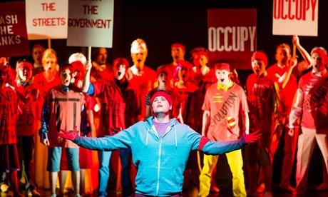 Her younger, or imagined younger incarnation is Lisette (Joanna Songi), a super young performer with a voice well on the way to being something special and somehow a presence to match. There was something very flesh and blood about this performance. Adam Gilbert, as the garish aspiring pop idol (Gulliver) whom she teams up with, and who is in some way an idealised or gooey-eyed self-projection of the wily boy Rufus, seems more of a cipher even when he marshals the crowd in a G8-type insurrection; but the ringing baritone voice is really something for a young singer only just out of studies at the Guildhall; he too is on his way.