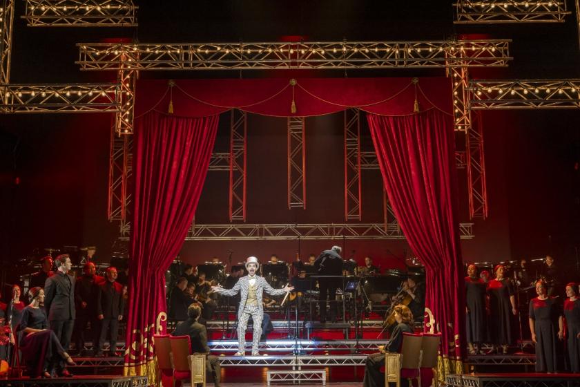 In such a large cast list, it’s hard to mention anyone without emphasizing the qualities shared by all. Stephanie Corley (pictured above) and Quirijn de Lang have the lions’ share of the stage time, of course, and present their Everyman and Everywoman roles, in sweet and sourer times, with immediacy and honesty while singing superbly: his rich baritone is in resonant form, and she never falters in a wide range of styles. Louie Stow and Tilly Baker carry a significant acting task off very effectively, too.