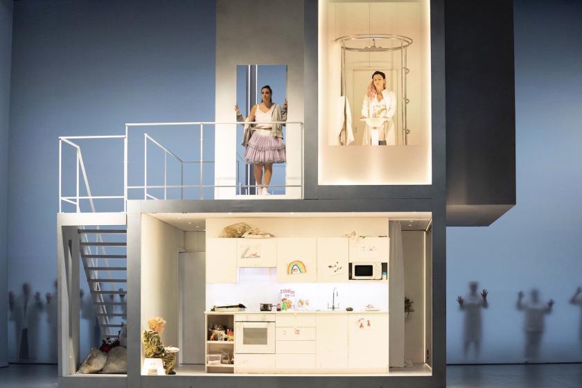 The exquisite setting is a deliberate irony, like the gardens in Mozart, sweet, managed disguise for hideous, anarchic goings-on. To replace all this, as Isabella Bywater does, with a revolving airport control tower in a big white box, and to replace the flowery dresses and fluttering fans with silly, prancing girls in fluffy tutus and family elders in suits and twin sets is to kill the irony stone dead and make nonsense of the music. Hume calls this capturing the work’s polarities: but they are the wrong polarities, ones which ridicule the authentically alien alongside Butterfly’s sincere, touching embracing of her husband’s culture, here parodied by a bank of washing machines, a kitchen bar and what we are now allowed to call a toilet, while the music pursues its own delicious, unheeding course.